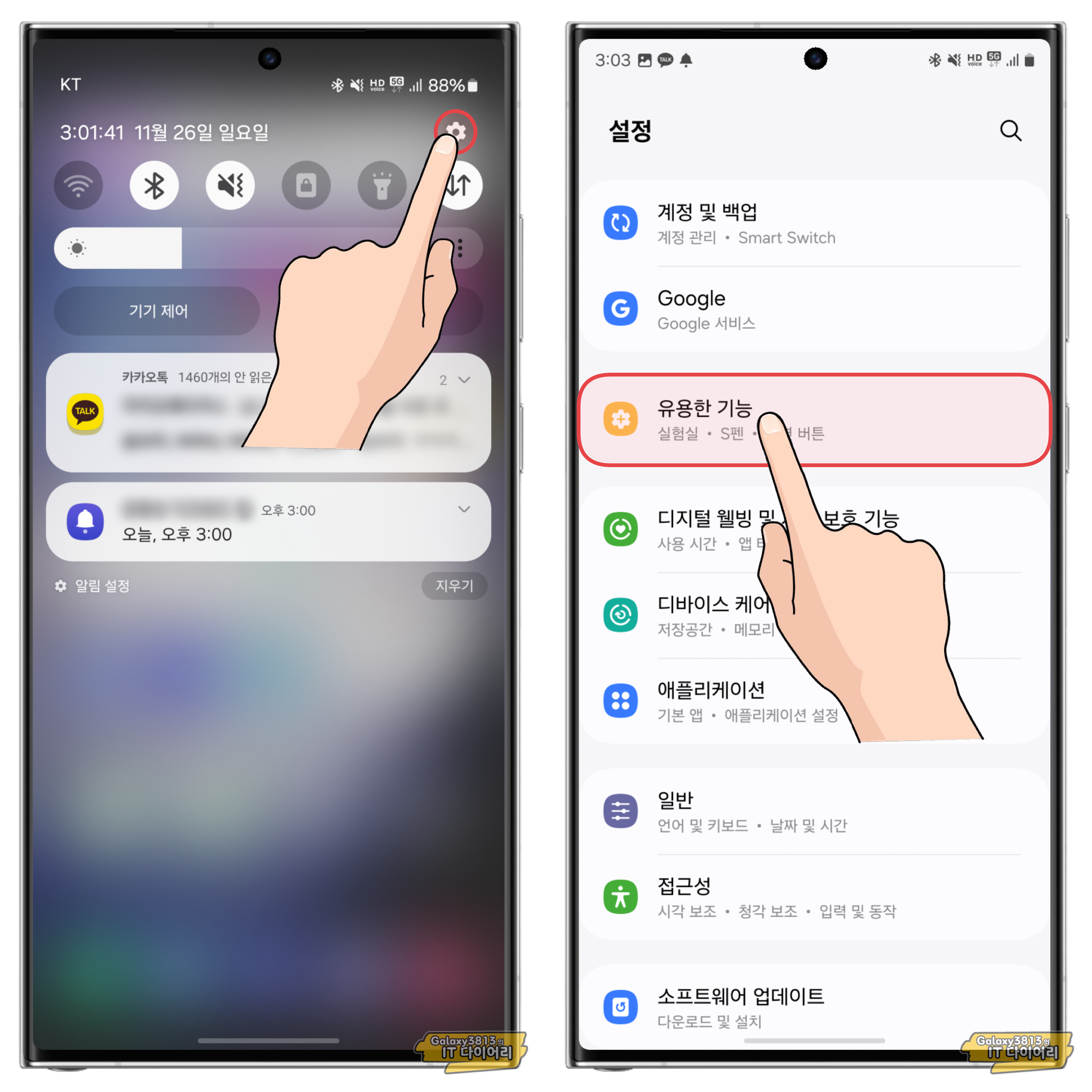 먼저 폰 설정으로 들어간 다음 유용한 기능으로 들어가 주세요.